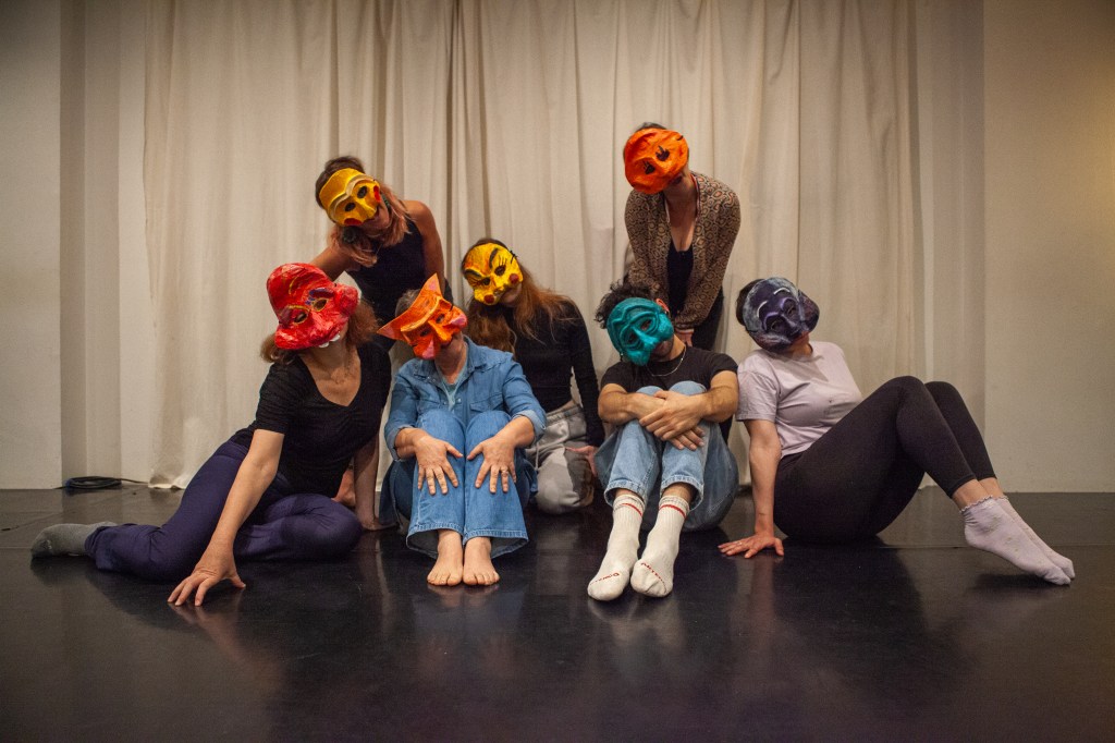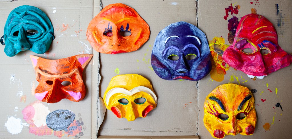 Le masque est un outil puissant. Jouer masqué permet de nouveaux chemins, une plus grande liberté. Le corps reprend sa place, l’expressivité et la gestuelle sont à l’honneur. Travailler visage masqué permet notamment de jouer à l’abri et de se libérer du regard de l’autre.