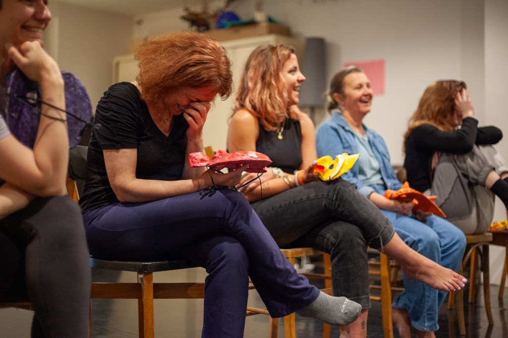 « À partir de superbes masques inspirés de la Comedia Dell Arte, nous avons joué des personnages drôles, touchants, burlesques, farfelus, maladroits et attendrissants !!! C’est le stage dont j’avais besoin pour retrouver un regard neuf sur la vie, un regard décalé où l’erreur est un cadeau.